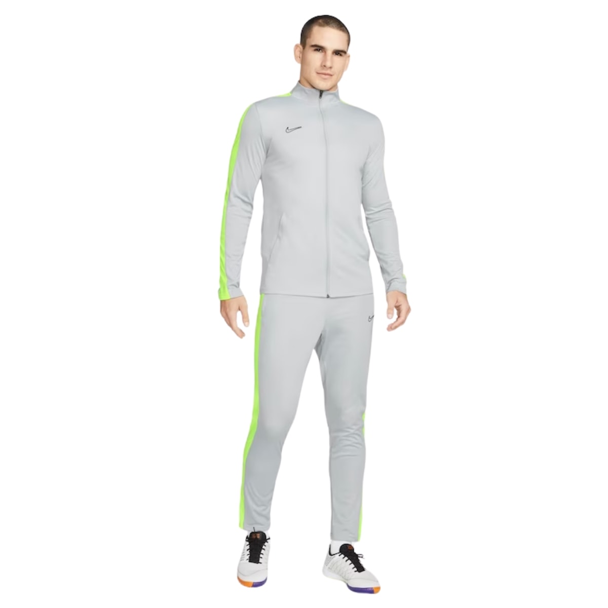 Seja na hora do jogo, em um dia de viagem ou em uma tarde de folga, nosso agasalho Academy que absorve o suor tem tudo o que você precisa. Esse conjunto de calça e jaqueta parece leve e macio com ventilação em áreas-chave para que você tenha a quantidade certa de frescor.
