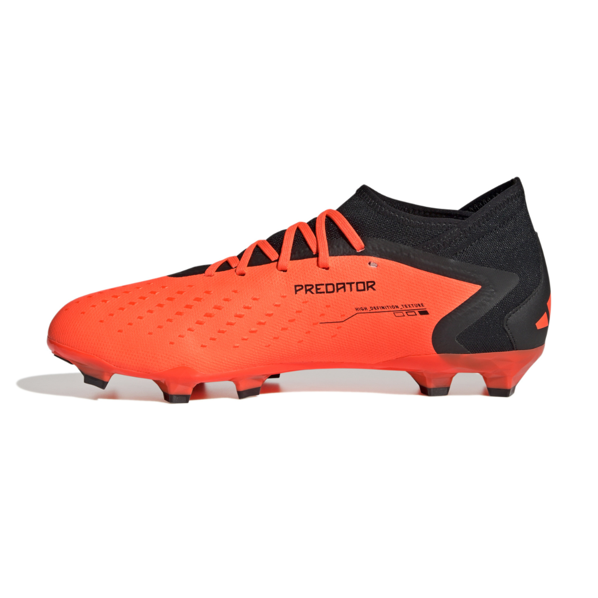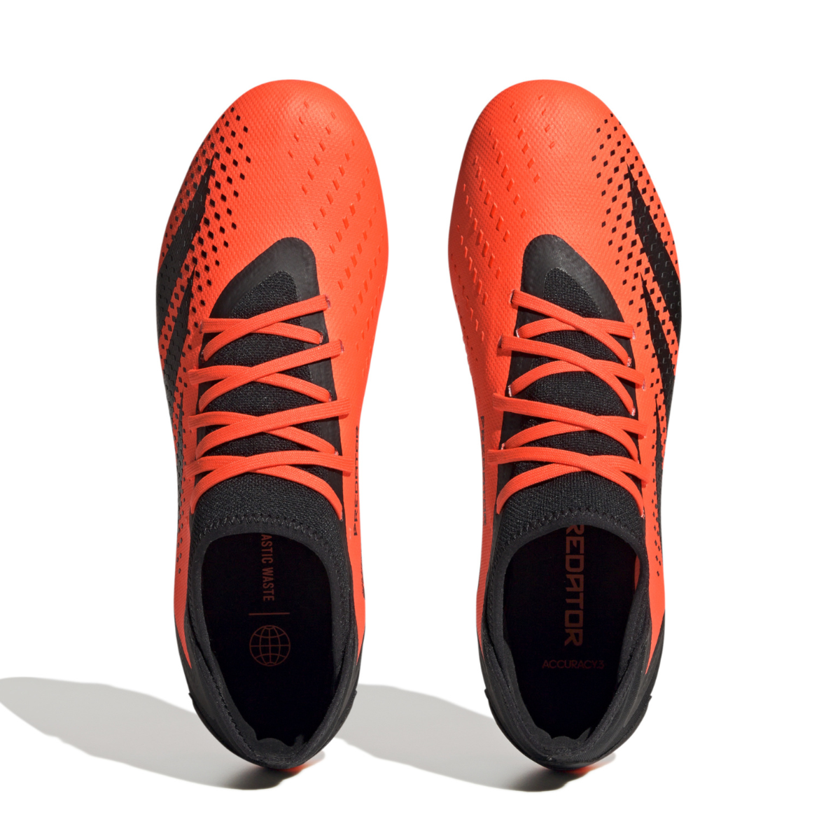 Controle + precisão = confiança. Quando o objetivo estiver na sua mira, busque a perfeição com a adidas Predator Accuracy. O cabedal têxtil macio e revestido desta chuteira inclui textura de alta definição em sua zona de impacto. Uma mistura de elementos e estampa em relevo, ela está lá para aprimorar os passes e chutes. Por baixo, um solado especial mantém você no controle.