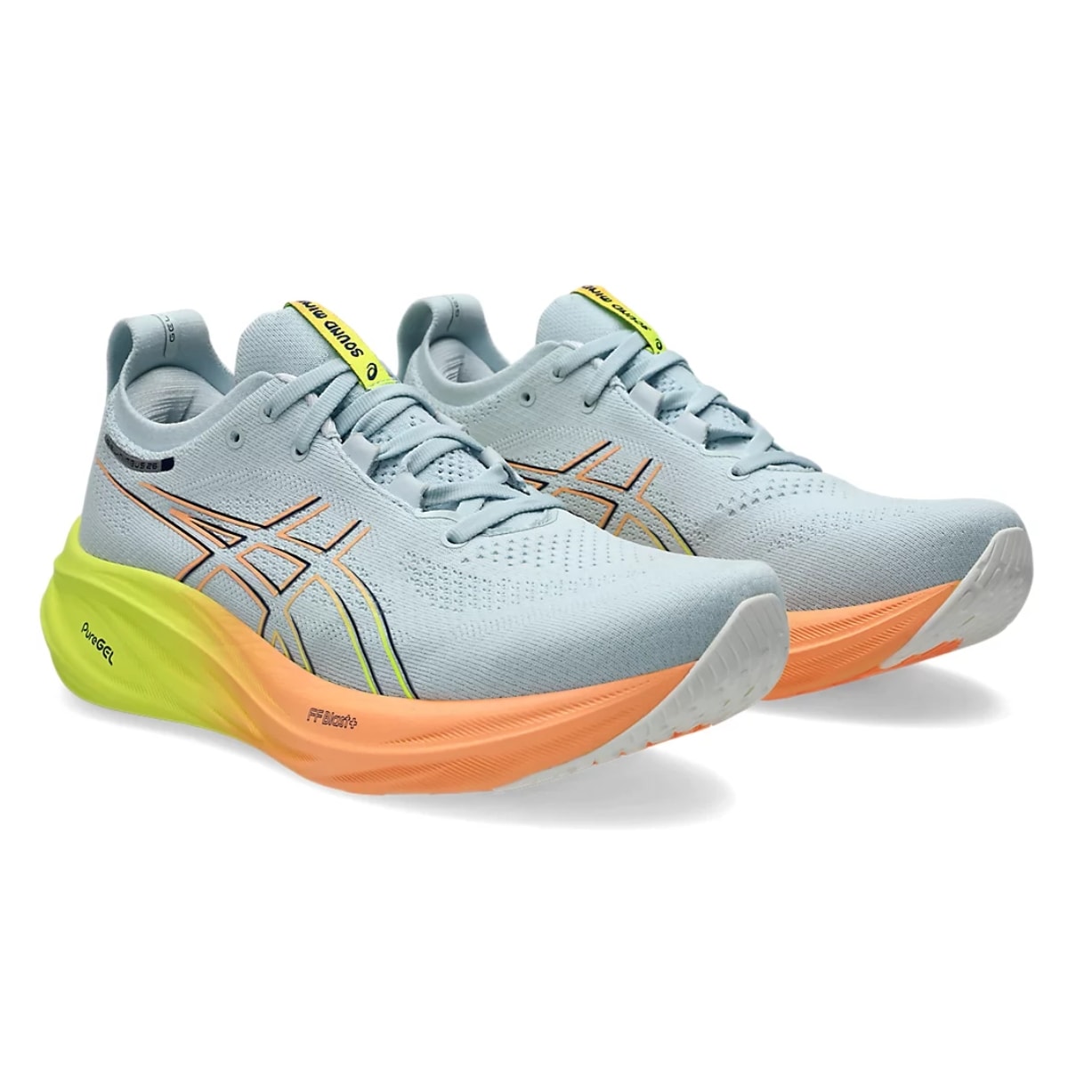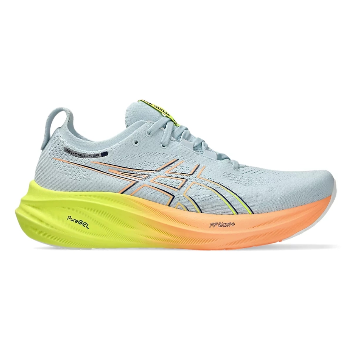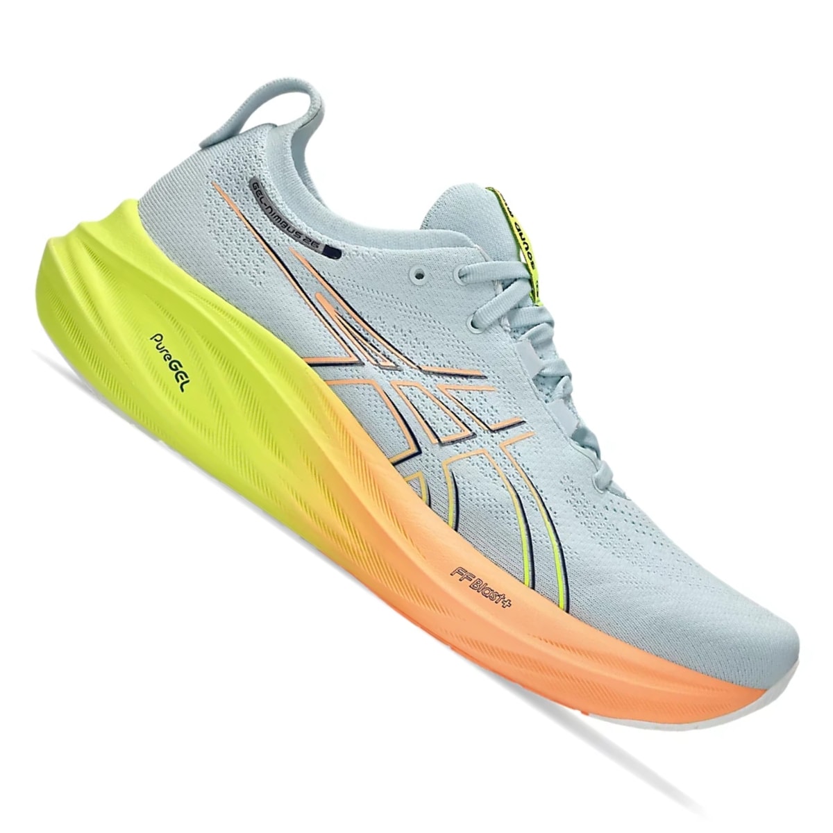 O GEL-NIMBUS™ 26 PARIS proporcionam a sensação de estar caminhando nas nuvens. Este design foi renovado para ajudar a criar uma experiência de corrida mais agradável e suave. As cores são inspiradas na "cidade das luzes" e seus tons energizantes.