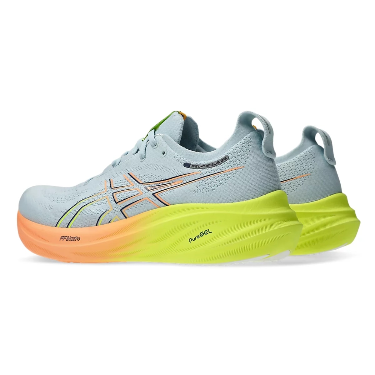 PureGEL™: Gel estrategicamente posicionado abaixo do calcanhar para um passeio mais suave. É 65% mais macio do que a tecnologia visível convencional GEL™, permitindo que seu treinamento à distância seja surpreendentemente suave.